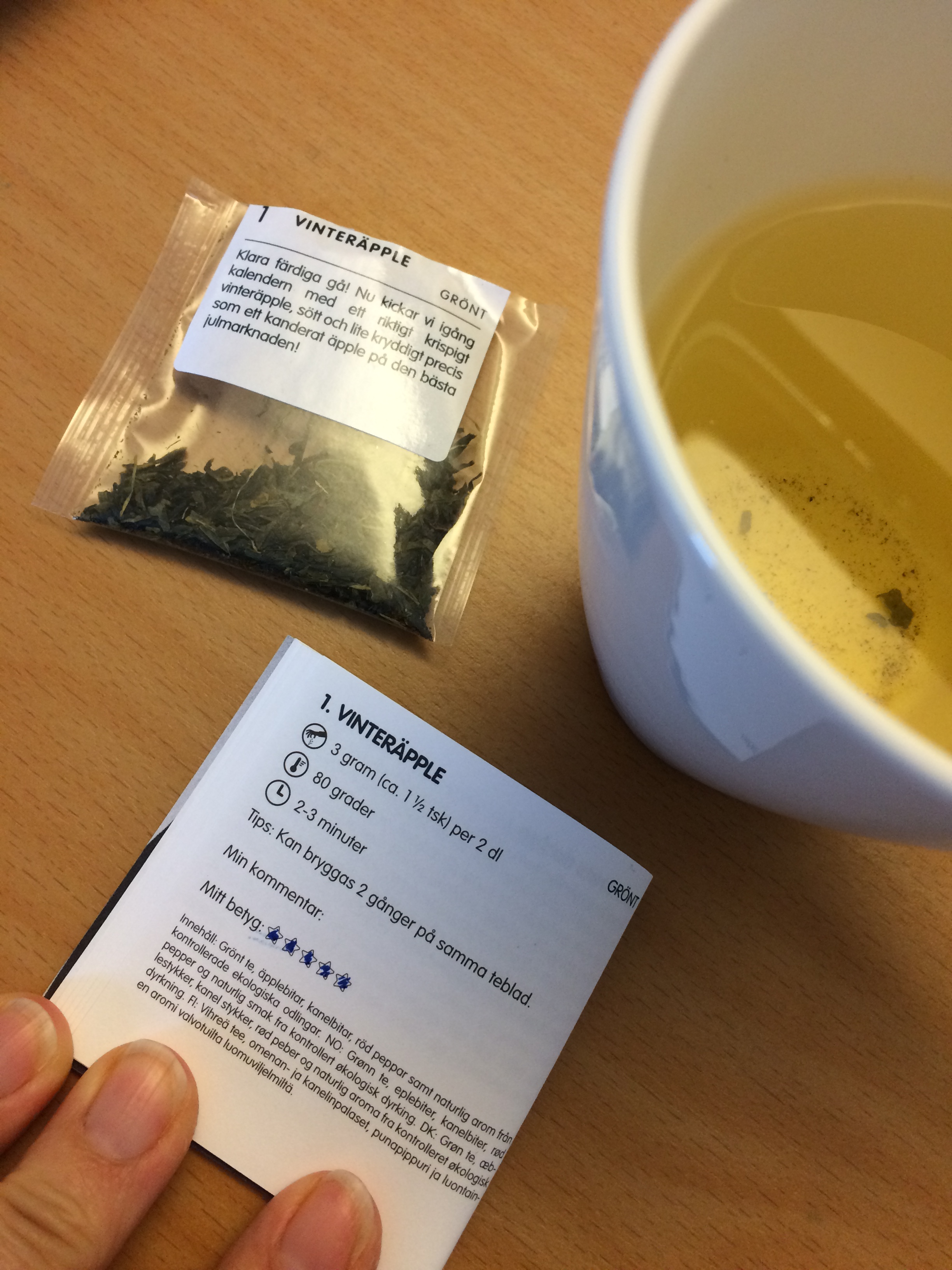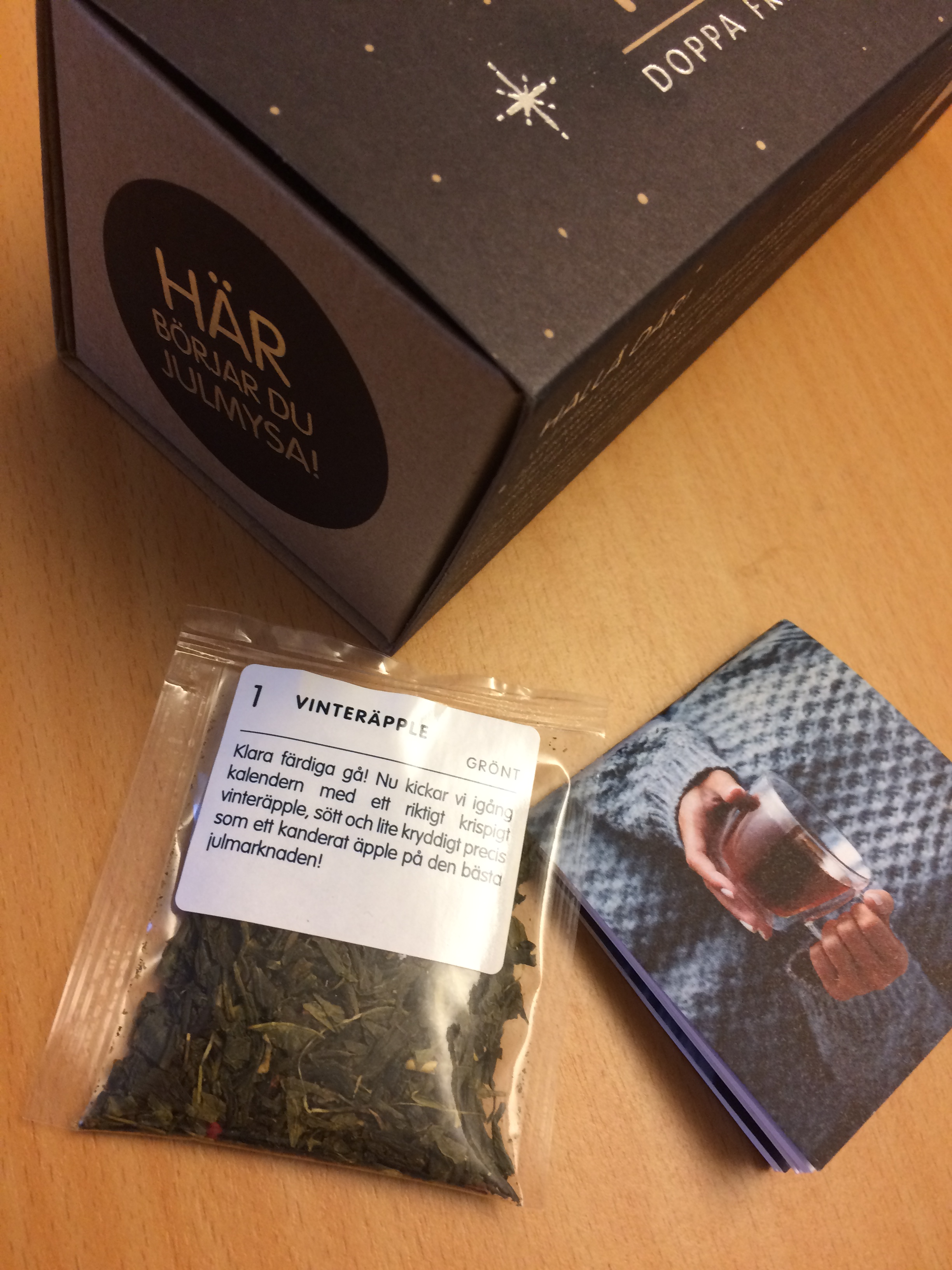Som vanligt är det väl genomtänkt och mycket detaljer jag gillar. Förpackningen är vacker, den lilla boken är rolig att läsa i och ge betyg till de olika teerna, texterna på själva påsarna är mysiga, till och med hur det är packat när man får sitt paket är fint. Att det är Eko och FSC-märkt är självklart underbart! Att tjejerna bakom Te-Adventskalendern är aktiva på sociala medier gör också sitt till.