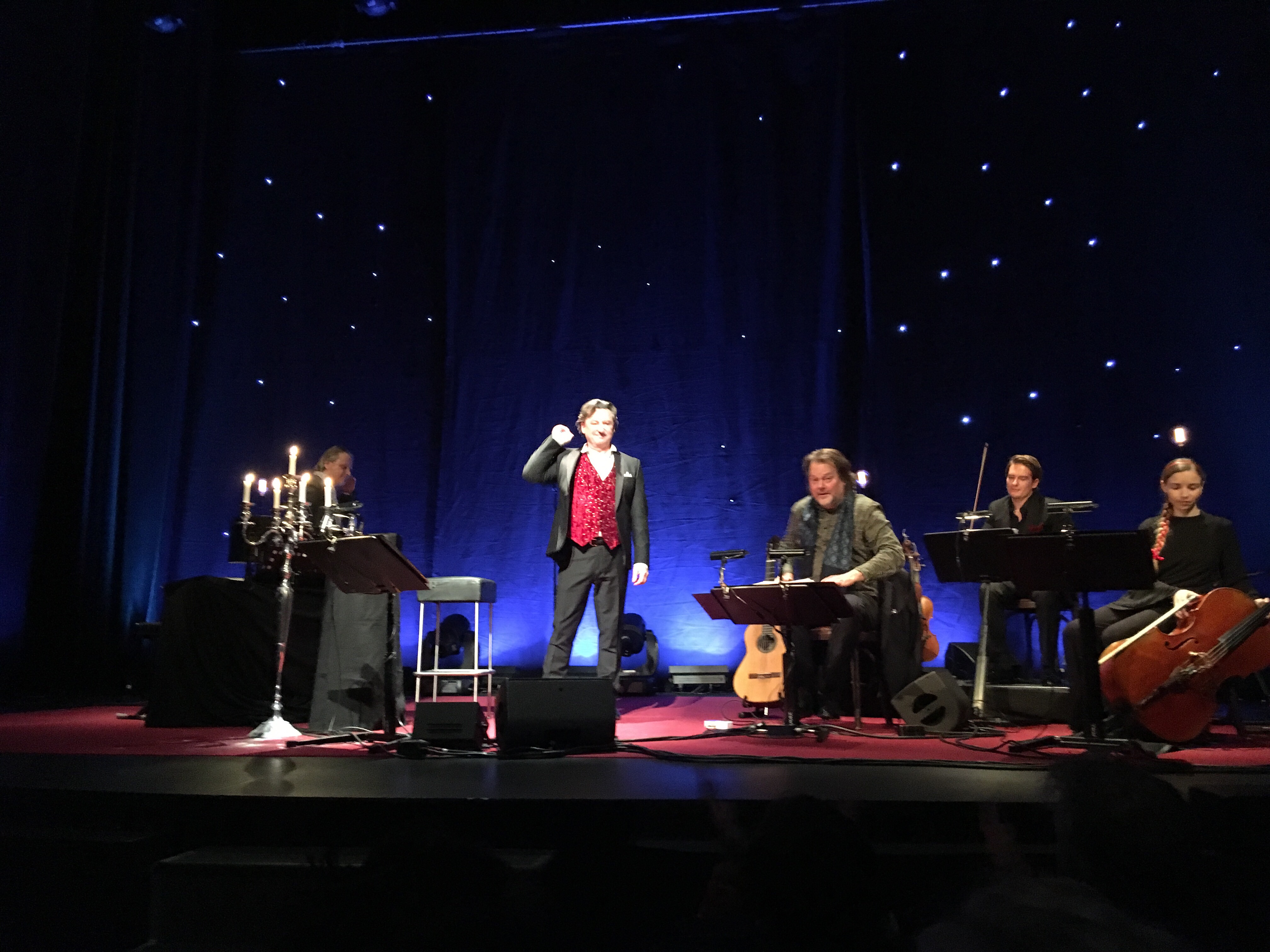 Anders Ekborg bjöd på allt från Adele till Italiensk opera. Från O helga natt till Josh Groban’s You Raise me up. Från roliga anekdoter till sorgliga tankar. Det bästa på hela kvällen var när han sätter sig tillrätta i en vacker fåtölj och läser Viktor Rydbergs Tomten. Det bästa jag hört på länge. Magiskt.