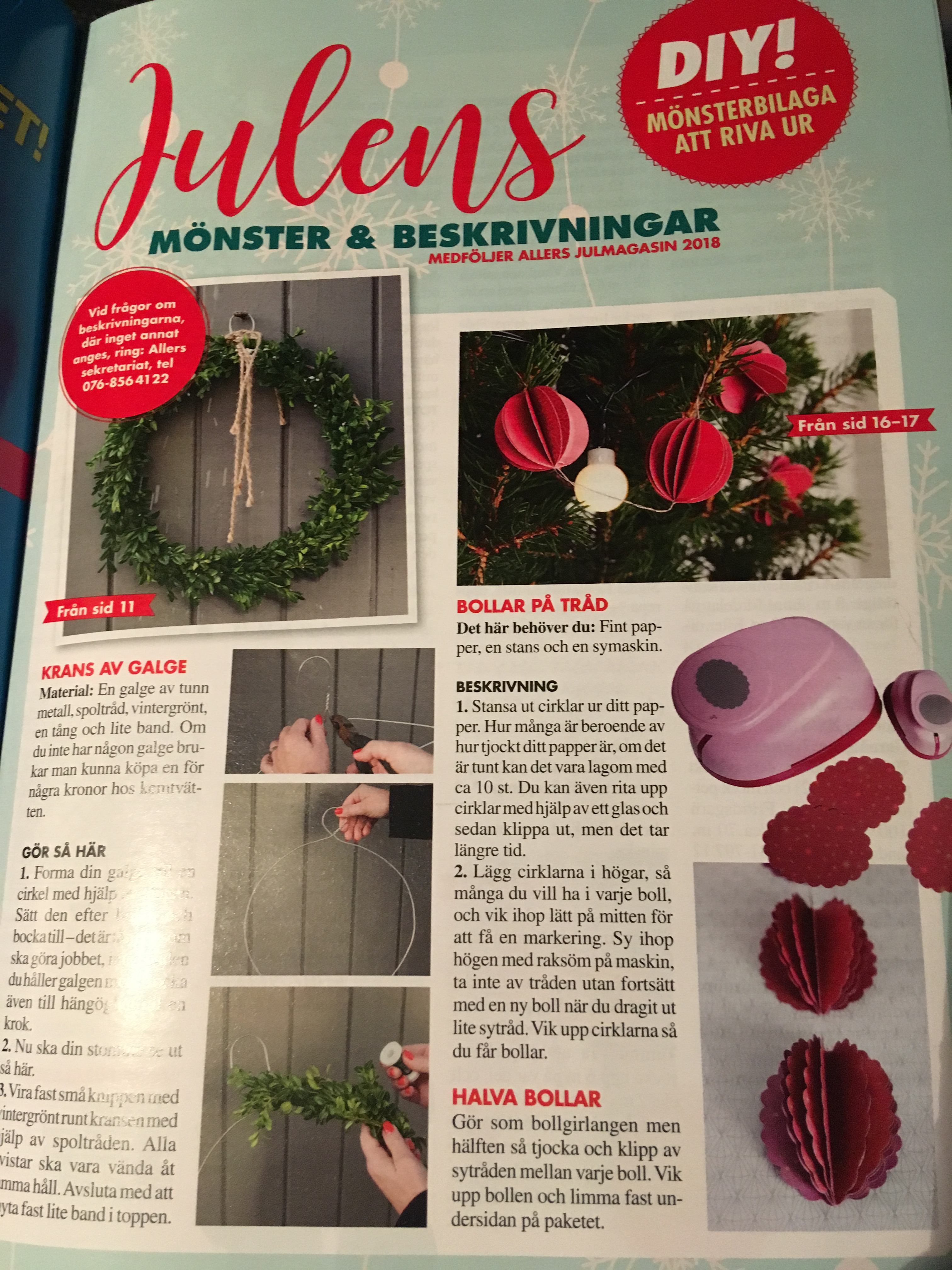 Igår på City Gross hittade jag Allers Julmagasin Decemberdrömmar 2018! Som vanligt en blandning av hemma-hos-reportage, pyssel, recept, julklappstips osv. Som vanligt bra! Hur söt är inte renen? Har snöat in på renar, vill ha en i julgranen i år. Men att gå så långt att jag skulle sticka/virka en, det lär inte hända 😉 Men otroligt söt!